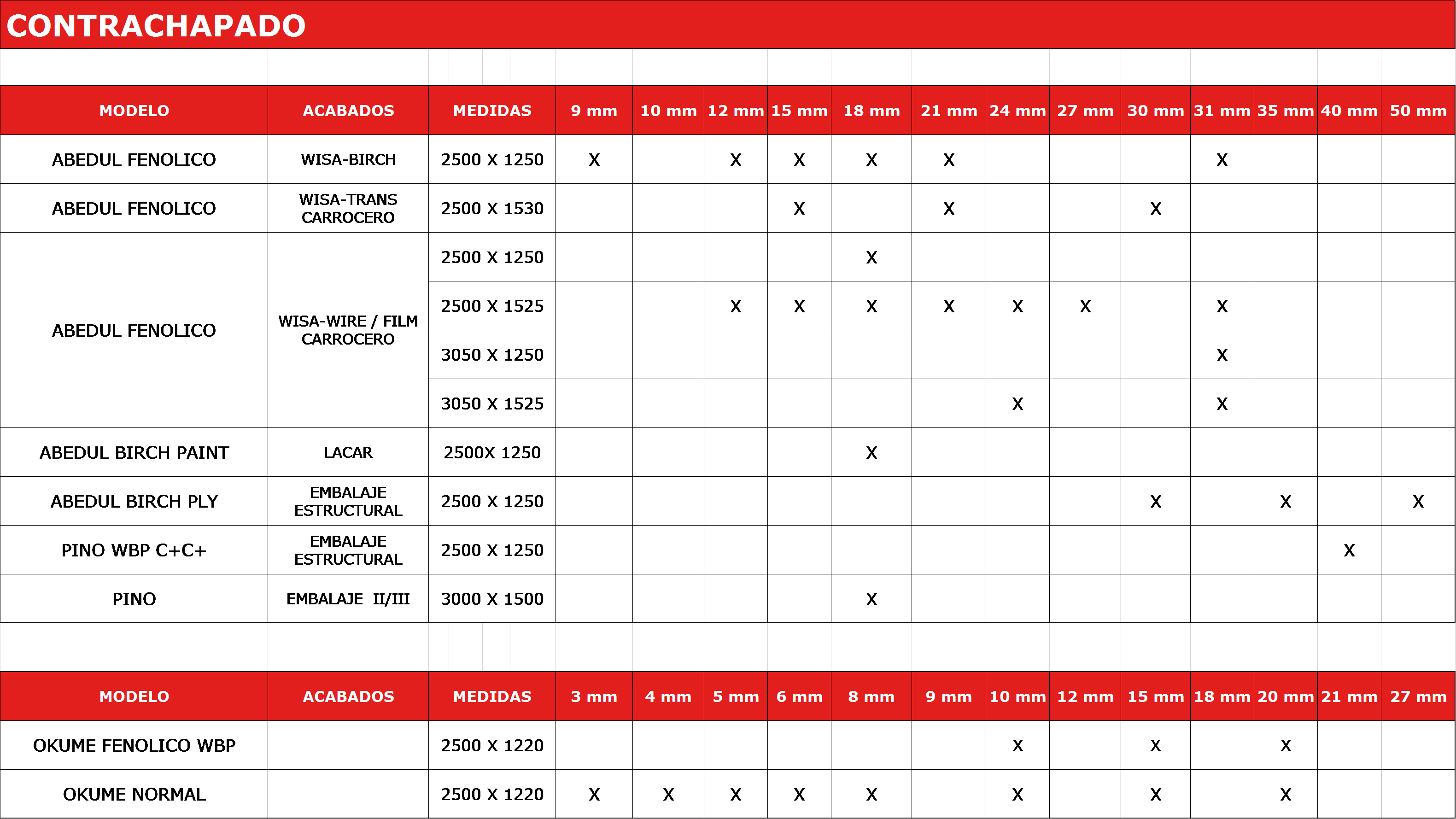 El tablero contrachapado se elabora a partir de chapas de madera superpuestas, alternando el sentido de la fibra y pegadas entre sí con colas normales o fenólicas, siendo el resultado final un panel de gran estabilidad dimensional, excepcional resistencia y ausencia de alabeo.